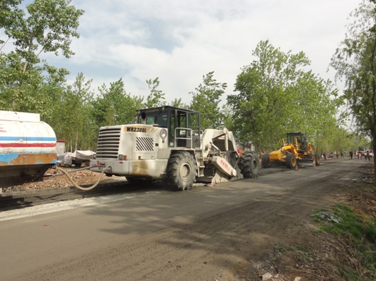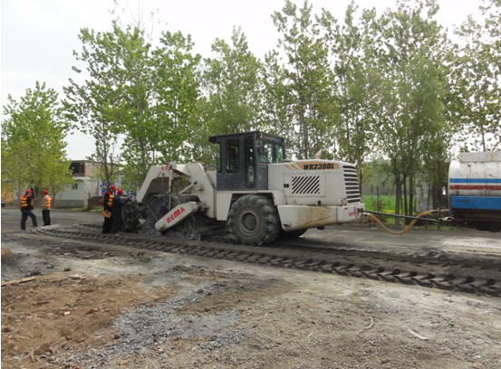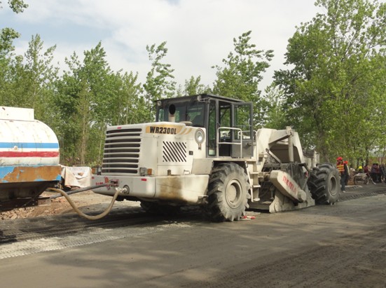 2012年3月,我公司生產的一臺600馬力WR2300L路面冷再生機在河南省長葛市S325省道進行路面冷再生施工,該路段為省道,面層為6-7公分的瀝青混凝土,穩定層為水泥碎石穩定層。業主對該路段的大修要求是用銑刨機將瀝青面層銑刨清運,然后用冷再生機對下面的水泥穩定土基層進行就地冷再生施工。在精心組織施工下,一臺我公司生產的WR2300L路面冷再生施工質量穩定,深獲業主好評,綜合評價勝過另一標段的國外同類機型,在施工后期,業主只留一臺我公司的WR2300L冷再生機施工作業,并承諾在以后的工程中繼續使用我公司生產的WR2300L路面冷生機。在實際的路面冷再生施工中獲得國內公路施工單位的如此贊譽,使我公司廣大員工深受鼓舞,這是我公司多年勤奮努力的結果,追趕國外先進公司路面冷再生機的性能,這是我公司多年的目標,現在這一目標已部分實現,國外先進機器的性能并不是國內生產企業做不到的,目前我公司生產的600馬力冷再生機,在機器的綜合施工效率、噴水計量精度、銑刨鼓的耐磨性上均已處于國內領先水平。我們深信辛勤的努力可以獲得進步的回報,我們也將繼續努力,開發更先進的機型,努力回報用戶,回報社會。