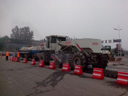 國(guó)道G108臨汾段今年開(kāi)始冷再生大修施工,該路段為公路干線,路基及路面強(qiáng)度很高,其中部分路段,比如靠近收費(fèi)站的路段,經(jīng)過(guò)多次維修,采用了改性瀝青鋪設(shè)面層,路面強(qiáng)度很高,即使是進(jìn)口機(jī)械施工也不輕松,導(dǎo)致機(jī)器工作速度慢,刀具磨損損耗量明顯增大等。該路段共有六個(gè)標(biāo)段,施工的主要設(shè)備冷再生機(jī)以進(jìn)口品牌為主。由于工期緊張,先后有兩個(gè)標(biāo)段調(diào)用了我公司生產(chǎn)的600馬力WR2300E,WR2300L冷再生機(jī)。我公司冷再生機(jī)面對(duì)如此高強(qiáng)度路面冷再生,機(jī)器展示了國(guó)產(chǎn)機(jī)械的優(yōu)異性能,通過(guò)了考驗(yàn),贏得了施工方的認(rèn)可。參于施工的兩臺(tái)600馬力冷再生機(jī),均安裝了我公司自行生產(chǎn)的可拆卸刀庫(kù)重型轉(zhuǎn)子,很好地體現(xiàn)了可拆卸刀庫(kù)重型轉(zhuǎn)子在高強(qiáng)度冷再生施工中的適應(yīng)性。