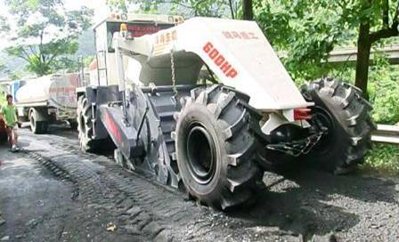 懷化市2013年的兩段冷再生工程分別是G320國道洪江段和S222省道靖州段,兩段工程總大修里程超過60公里。在項目調研階段,我公司會同河南隆裕工程公司經實地考察,認為兩段路雖屬干線公路,但路基的損壞較嚴重,路基強度屬中等強度,冷再生機施工強度不高,鑒于兩段路均屬丘陵山地,坡道多,彎道多,施工管理難度較大,需要加強現場管理。